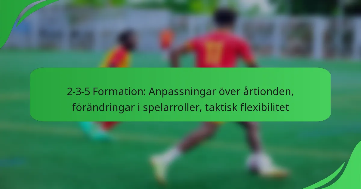 2-3-5-formationen är en klassisk fotbollsstrategi som kännetecknas av två försvarare, tre mittfältare och fem anfallare, vilket betonar aggressivt anfallsspel samtidigt som den upprätthåller defensiv balans. Under årtiondena har denna formation utvecklats, med spelarrollernas anpassning för att möta föränderliga taktiska krav och öka flexibiliteten på planen. Som ett resultat kan lag skifta mellan offensiva och defensiva strategier, vilket möjliggör en mer dynamisk respons på matchsituationer.