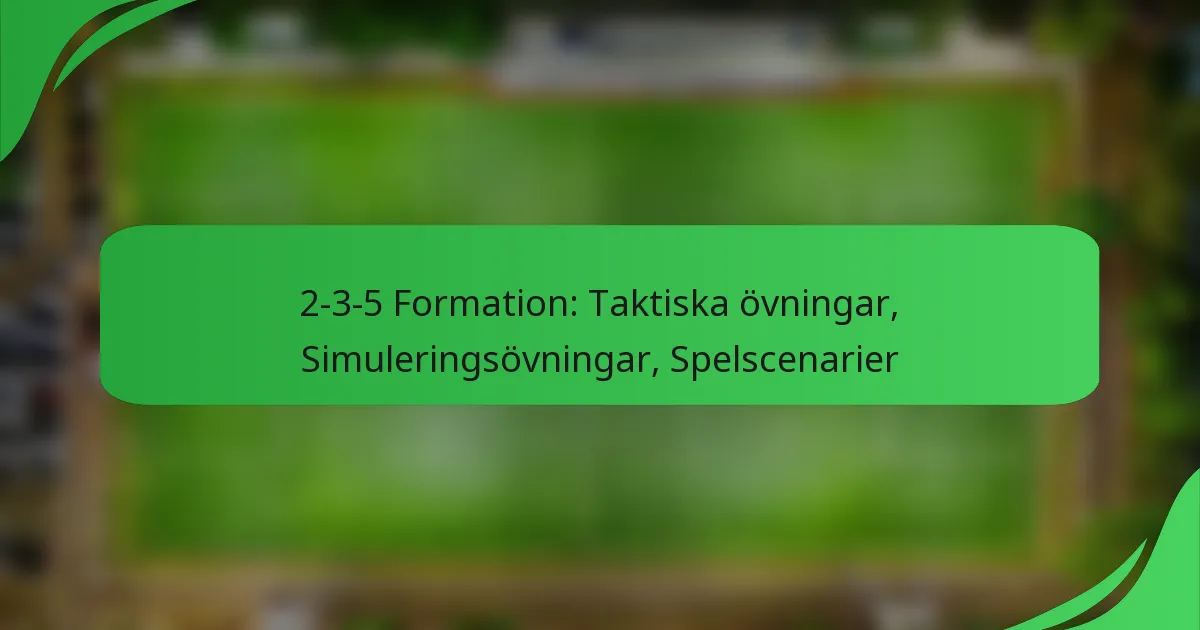2-3-5-formationen är en klassisk fotbollsuppställning som betonar en aggressiv anfallstil med sin arrangemang av två försvarare, tre mittfältare och fem anfallare. För att maximera dess effektivitet kan tränare implementera taktiska övningar och simuleringsövningar som fokuserar på positionering och rörelse, vilket förbereder spelarna för verkliga matchsituationer. Dessa övningar förbättrar inte bara lagets samordning utan hjälper också spelarna att internalisera sina roller inom formationen, vilket säkerställer en väl förberedd trupp på matchdagen.