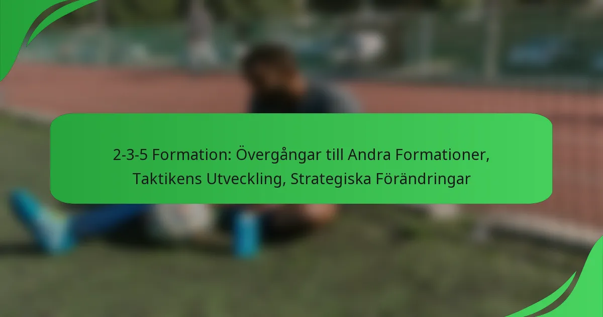 2-3-5-formationen är en traditionell fotbollsuppställning som kännetecknas av två försvarare, tre mittfältare och fem anfallare, med fokus på offensivt spel och bollinnehav. När den taktiska landskapet inom fotboll har utvecklats har denna formation anpassats och övergått till moderna uppställningar som 4-2-4 och 4-3-3, vilka erbjuder nya strategiska fördelar. Dess historiska betydelse har banat väg för innovationer som fortsätter att forma det samtida spelet.